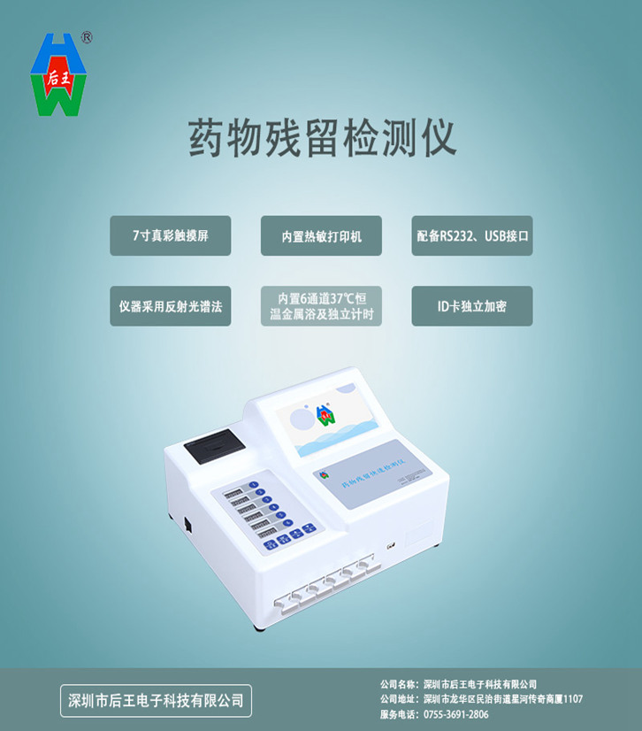 農業(yè)監(jiān)督檢測方案深圳市后王電子科技有限公司專業(yè)生產食品安全檢測儀器、提供全套的農業(yè)監(jiān)督檢測方案以及實驗室整體規(guī)劃,實驗室體系建立。 檢測范圍:食品色素、病害肉、重金屬、蛋白質、粗蛋白、茶多酚、甜蜜素、安賽蜜、吊白塊、二氧化硫、二氧化氯、過氧化氫(雙氧水)、過氧化值、食用油酸價以及其他食品安全有毒有害物質項目進行快速檢測。